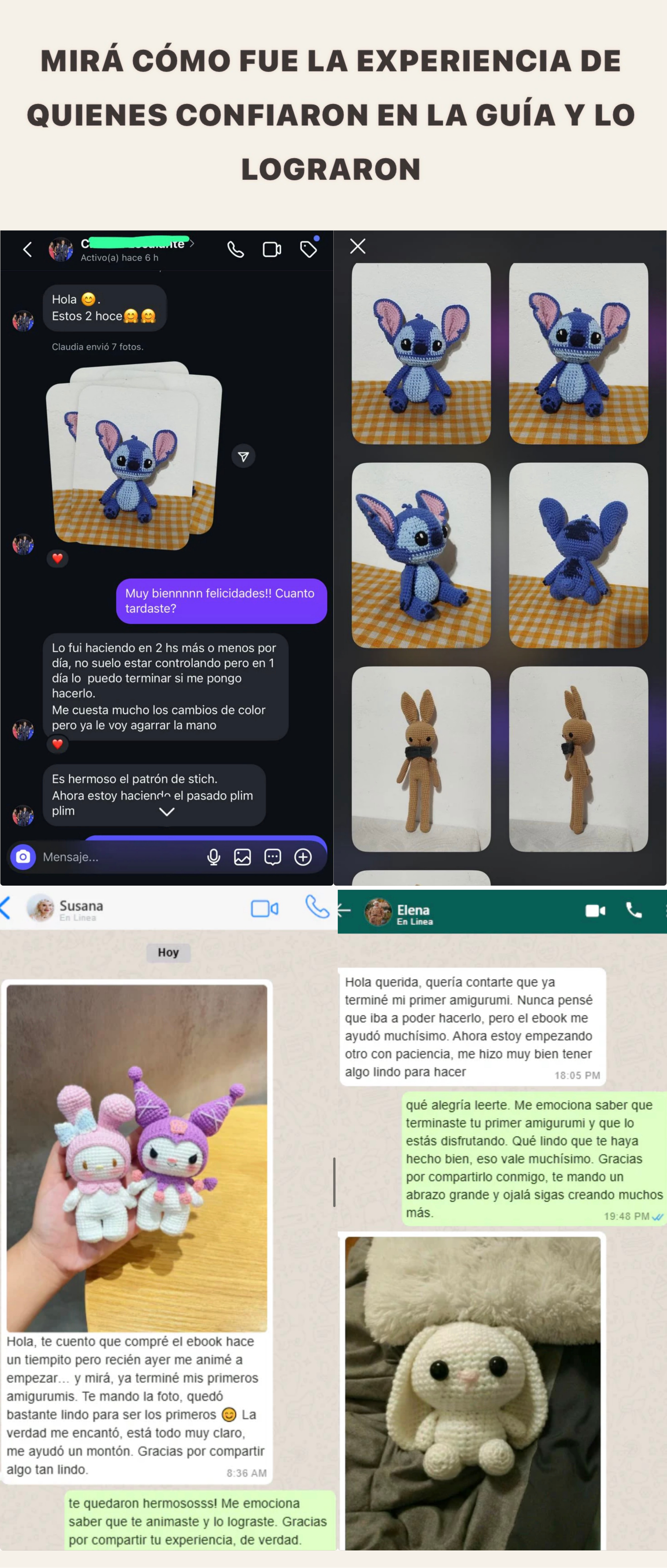 En menos de 24hs podés tener tu primer amigurumi terminado. La mayoría de alumnas lo logra en 1 tarde.